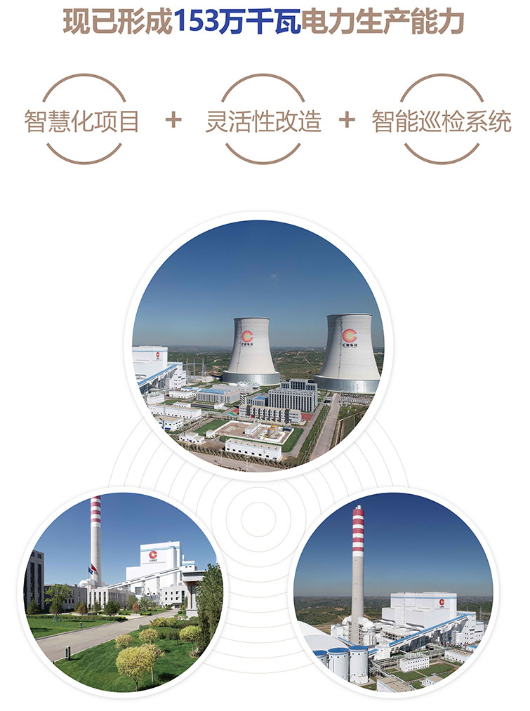 集團(tuán)共有3座電廠,其中2座建成運(yùn)行,1座正在建設(shè)。2006年,蒙南發(fā)電公司2×6萬(wàn)千瓦供熱機(jī)組建成投產(chǎn)。2023年,匯能長(zhǎng)灘2×66萬(wàn)千瓦超超臨界燃煤發(fā)電項(xiàng)目并網(wǎng)發(fā)電,屬于蒙西至天津南特高壓輸電通道的配套電源點(diǎn)之一,長(zhǎng)灘電廠二期工程2×66萬(wàn)千瓦發(fā)電項(xiàng)目正在建設(shè),屆時(shí)電力總裝機(jī)將達(dá)到285萬(wàn)千瓦。